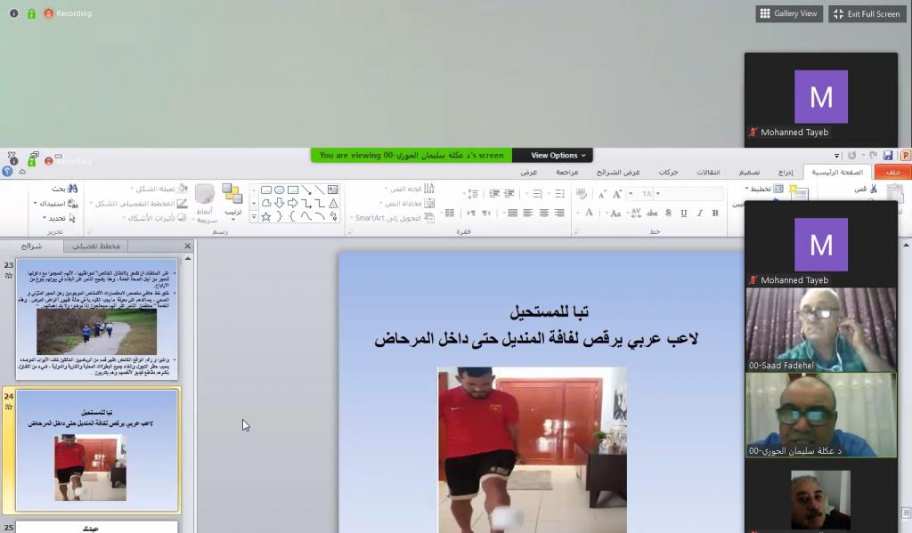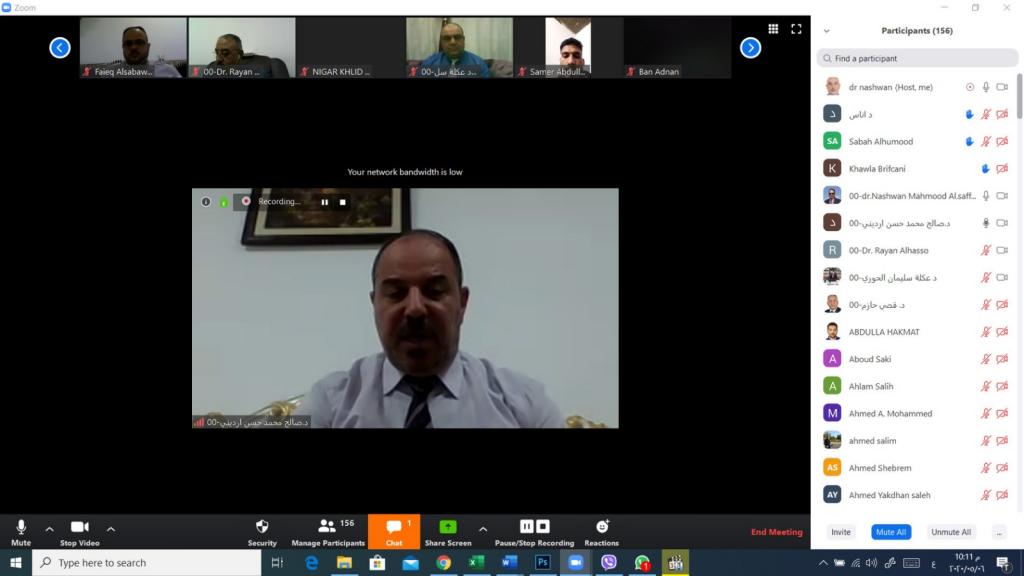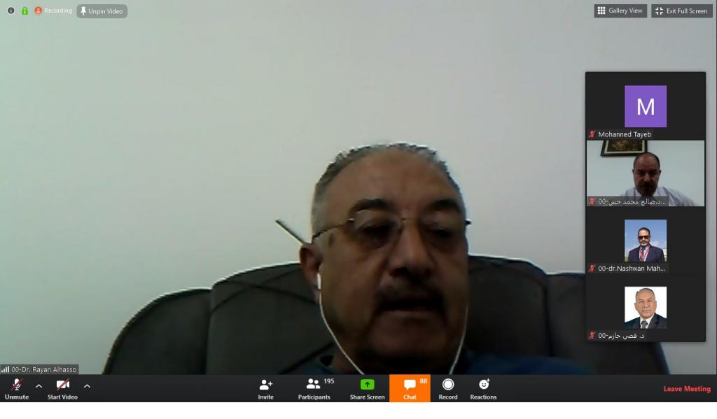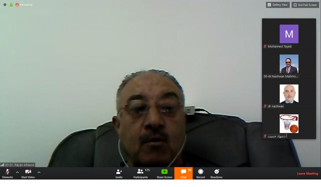 برعاية الاستاذ الدكتور قصي كمال الدين الاحمدي رئيس جامعة الموصل المحترم وباشراف الاستاذ الدكتور صالح ارديني عميد كلية التربية الاساسية المحترم أقام قسم التربية البدنية وعلوم الرياضة في الكلية ندوته العلمية الافتراضية الاولى بعنوان (جائحة كورونا ، نظرة ومعالجة من وجهة نظر علوم الرياضة) وعبر الفضاء الالكتروني لمنصة Zoom وذلك بالساعة العاشرة من مساء يوم الاربعاء الموافق 6/5/2020 .وتمت الادارة الالكترونية لجلسات الندوة من قبل الاستاذ الدكتور محمد توفيق عثمان معاون العميد للشؤون العلمية والاستاذ المساعد الدكتور نشوان محمود الصفار وقدم تم افتتاح الندوة بالسلام الجمهوري العراقي ثم اعقبته تلاوة من آيات الذكر الحكيم بعدها القى السيد عميد الكلية كلمة ترحيبية بضيوف هذه الندوة واشادة بالسادة القائمين عليها والسادة المحاضرين والمشاركين بعدها القى الاستاذ الدكتور قصي حازم محمد رئيس قسم التربية البدنية وعلوم الرياضة كلمة القسم ، ومن ثم بدأت الجلسة الاولى برئاسة الاستاذ الدكتور محمد توفيق عثمان حيث القى في الاستاذ الدكتور ريان عبد الرزاق الحسو محاضرته بعنوان (الجهاز المناعي والرياضة وجائحة فيروس كورونا) بعدها بدأت الجلسة الثاني برئاسة الاستاذ الدكتور سعد فاضل عبد القادر ومقرر الجلسة الاستاذ المساعد الدكتور ثامر محمود حيث القى الاستاذ الدكتور عكلة سليمان الحوري محاضرته بعنوان (تداعيات الصحة النفسية في ظل تفشي وباء كورونا) وبدأت الجلسة الثالثة برئاسة الاستاذ المساعد الدكتور نشوان محمود داؤد الصفار ومقرر الجلسة الاستاذ المساعد الدكتور أحمد هاشم الهلالي حيث القى الاستاذ المساعد الدكتور طه محمد تقي بعنوان ( تعزيز الجهاز المناعي ضد فايروس كورونا بواسطة الاغذية والاعشاب ) .وقد تخللت جلسات المؤتمرة الاجابة عن التساؤلات المطروحة من قبل السادة المشاركين ، وفي نهاية الندوة قرأ الدكتور نشوان محمود الصفار توصيات الندوة.وبلغ عدد المشاركين 550 مشارك من داخل القطر من جميع الجامعات والوزارات ومن خارج القطر كان عدد المشاركين 38 مشارك من الدول العربية (الجزائر وليبيا والامارات والسعودية).