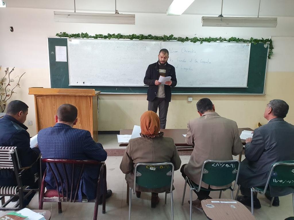 أقام قسم اللغة الانكليزية في كلية التربية الاساسية يوم الاثنين الموافق 24/2/2020 حلقة دراسية ( سمنر ) لطالب الدراسات العليا ( ماجستير علم اللغة ) احمد رعد ادريس بعنوان ( Noam Chomsky ) وحضر السمنر اساتذة وتدريسيي قسم اللغة الانكليزية وهم كل من