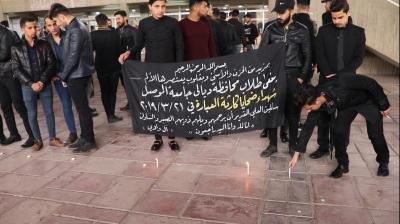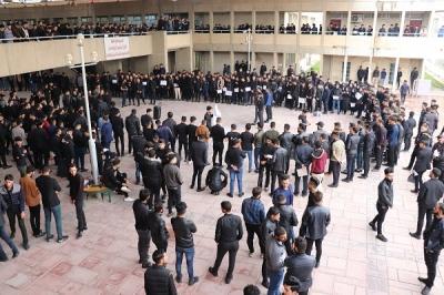 بدأت مراسيم العزاء بإقامة صلاة الغائب شارك فيها جميع طلبة وأساتذة الكليات الاربعة ، بعدها تم قراءة سورة الفاتحة على أرواحهم الطاهرة ، ثم القى الدكتور احمد فكاك عميد كلية العلوم السياسية كلمة نيابة عن كافة منتسبي المجمع الثاني الذي نعى فيها شهداءنا الابرار الذين سقطوا