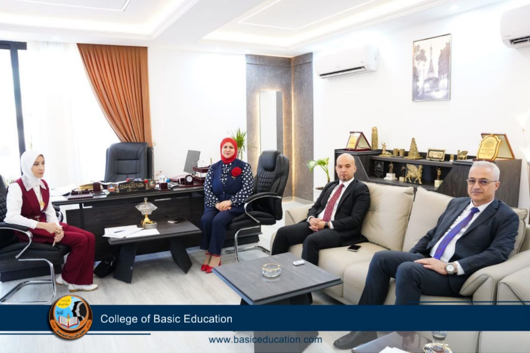 استقبل السيد عميد كلية التربية الأساسية، الأستاذ المساعد الدكتور محمد يونس الجريسي، في يوم الاحد الموافق 14/ 9/ 2025، كلا من السيدة عميد كلية العلوم، الأستاذ الدكتورة هيام عادل ابراهيم، والسيد عميد كلية الإدارة والاقتصاد، الأستاذ الدكتور سنان زهير محمد،
