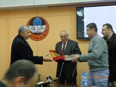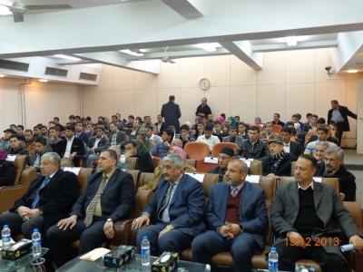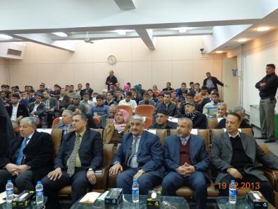 برعاية وحضور السيد رئيس جامعة الموصل الاستاذ ابي سعيد الديوه جي والسيد عميد كلية التربية الاساسية الاستاذ الدكتور معتز يونس ذنون ومعاون عميد الكلية للشؤون العلمية الاستاذ الدكتور سعد فاضل عبد القادر ورئيس قسم اللغة العربية الاستاذ المساعد الدكتور عامر ابراهيم الحساوي وحضور غفير غصت بهم قاعة ام الربيعين في الكلية ، اقام قسم اللغة العربية في كلية التربية الاساسية الملتقى الثقافي الشهري الحادي عشر للاحتفاء بالخطاط المبدع " يوسف ذنون"وذلك يوم الخميس الموافق 19/ 12/ 2013 وتضمنت الاحتفالية حديث الضيف تجربته في الخط العربي التي تفاعل معها الحضور بشدة , بعدها قام السيد رئيس الجامعة بتقديم شهادة تقديرية ودرعا للضيف واخيرا تم فتح باب النقاش للحضور مع الضيف الذين اشادوا بالضيف الكريم وابداعته في الخط العربي داخل القطر وخارجه وقام احد الحاضرين بالقاء كلمة وابيات شعرية تشيد بالضيف وتشيد بالكلية باعتبراها الصرح الاكاديمي الذي يستضيف المفكرين والاكاديميين والشعراء المبدعين سواء كانوا احياء او ممن قضوا نحبهم وابراز سيرتهم وانجازاتهم وفي ادناه الكلمة والابيات الشعرية التي اشاد بها الضيف .