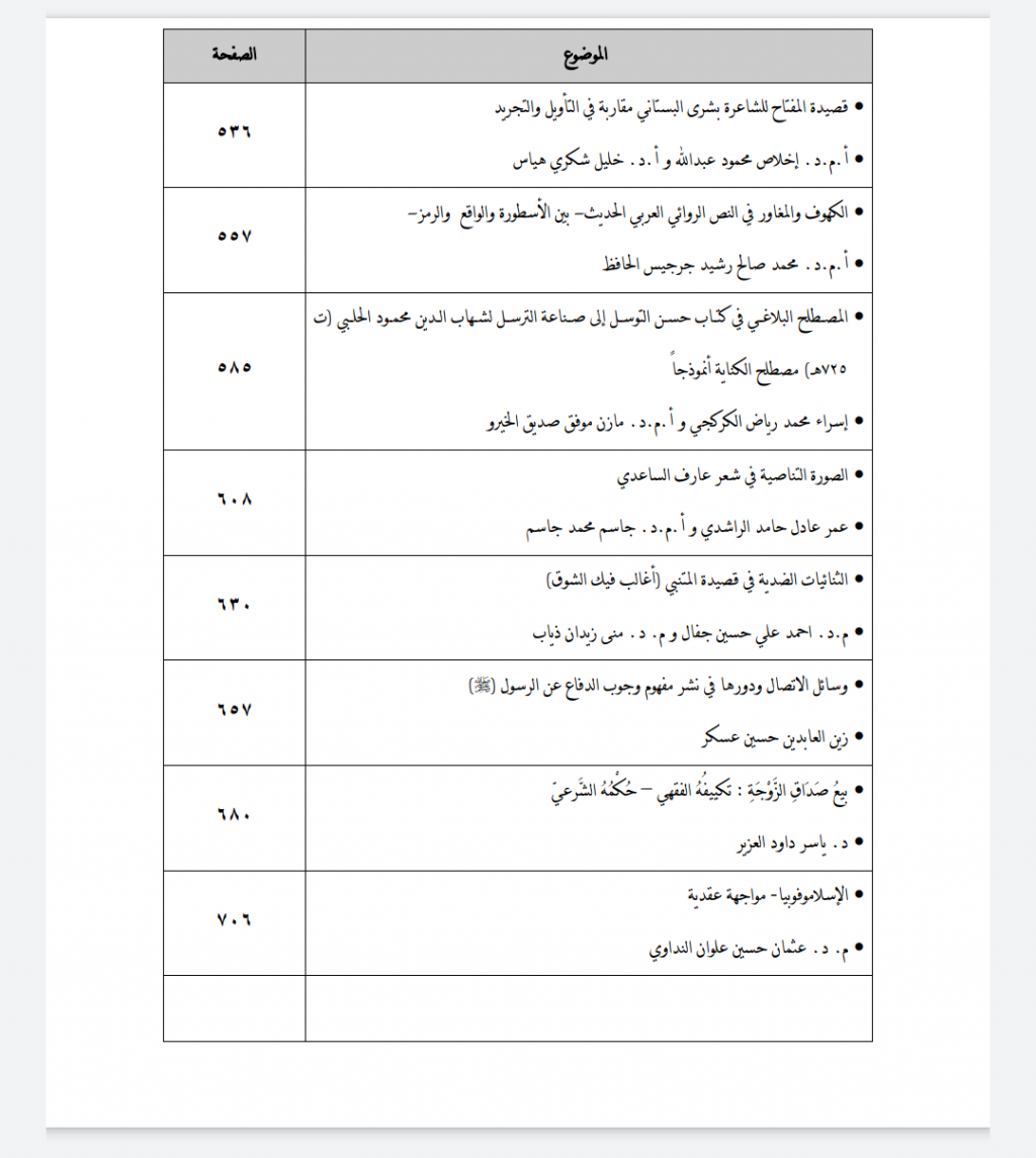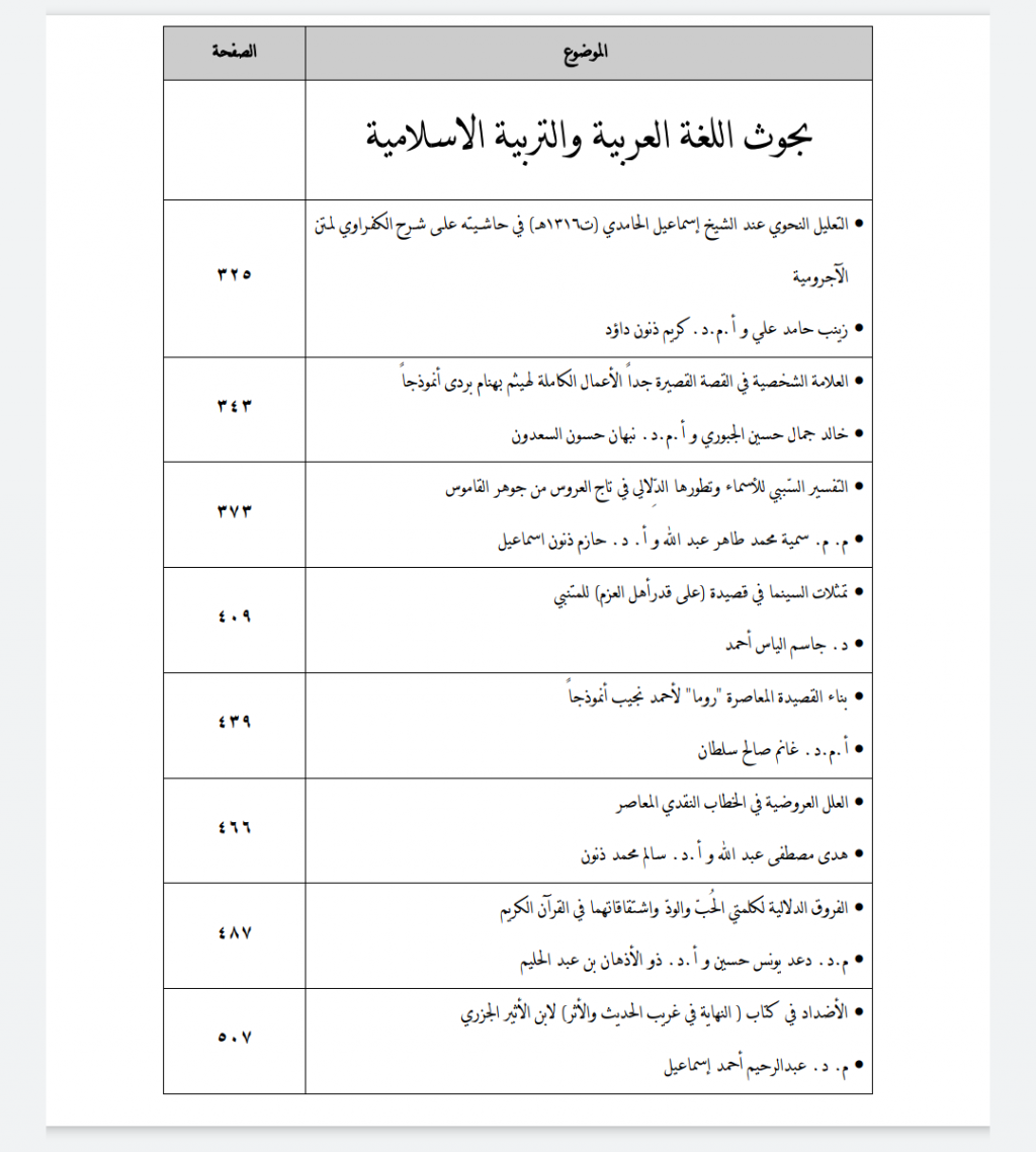 صدر حديثاً العدد الثاني / المجلد السابع عشر ( حزيران 2021 ) من مجلة أبحاث كلية التربية الاساسية التي تصدرها كلية التربية الأساسية بجامعة الموصل وتضمن العدد بحوثاً عدة في اختصاصات العلوم التربوية والنفسية ، واللغة العربية واللغة الإنكليزية ، والعلوم الإسلامية ، فضلا عن العديد من الدراسات التاريخية والجغرافية ، كما تضمن العدد الحالي أبحاثاً في التربية البدنية وعلوم الرياضة وأبحاثاً أخرى في العلوم الصرفة ، ونأمل ان يعثر الباحثون في تضاعيف هذا العدد على ما يصبون اليه من دراسات وبحوث علمية محكمة في مجال تخصصهم .