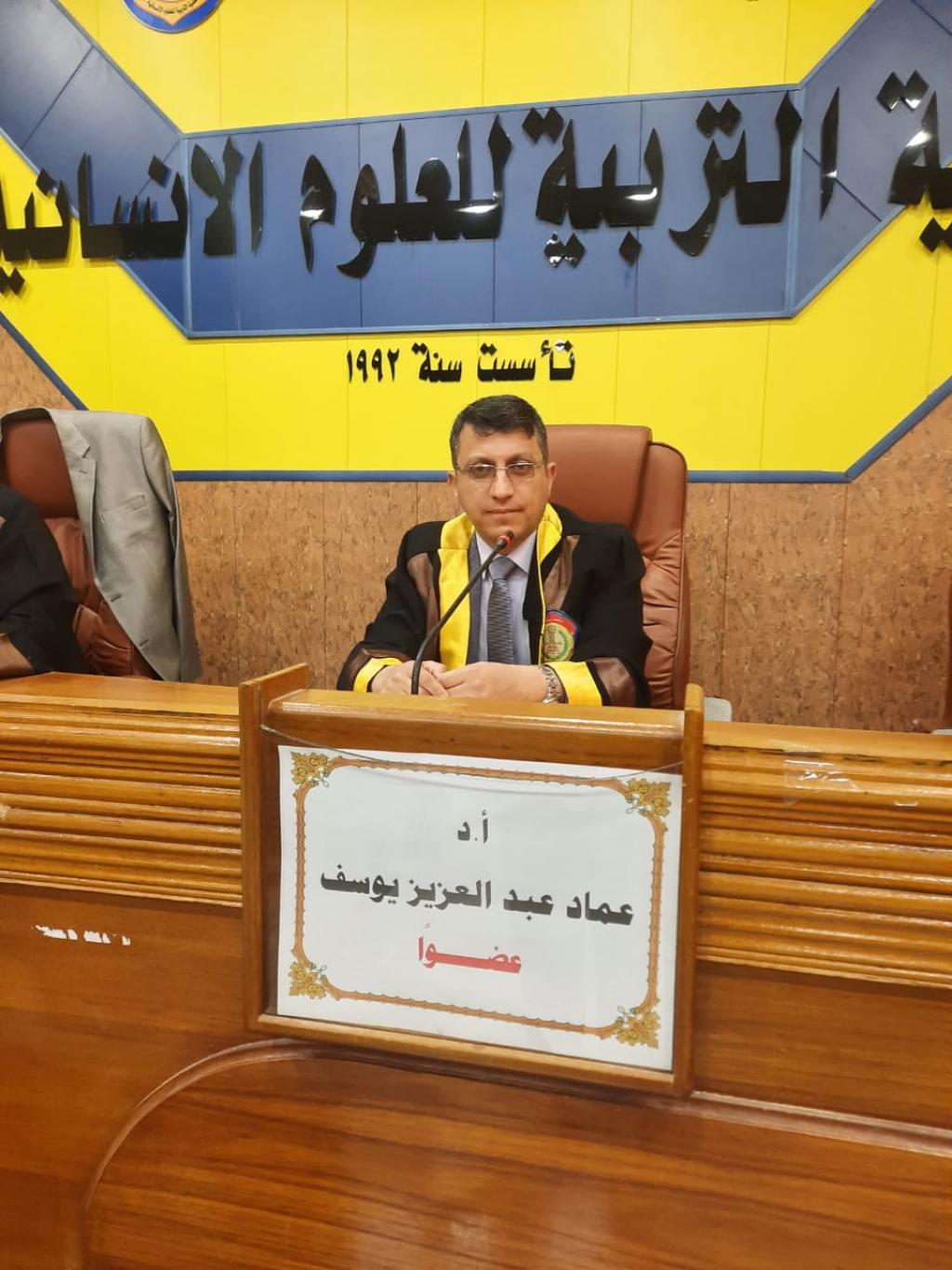 مشاركة أ.م.د. عماد عبد العزيز يوسف من كلية التربية الأساسية في لجنة مناقشة رسالة ماجستير في جامعة تكريت