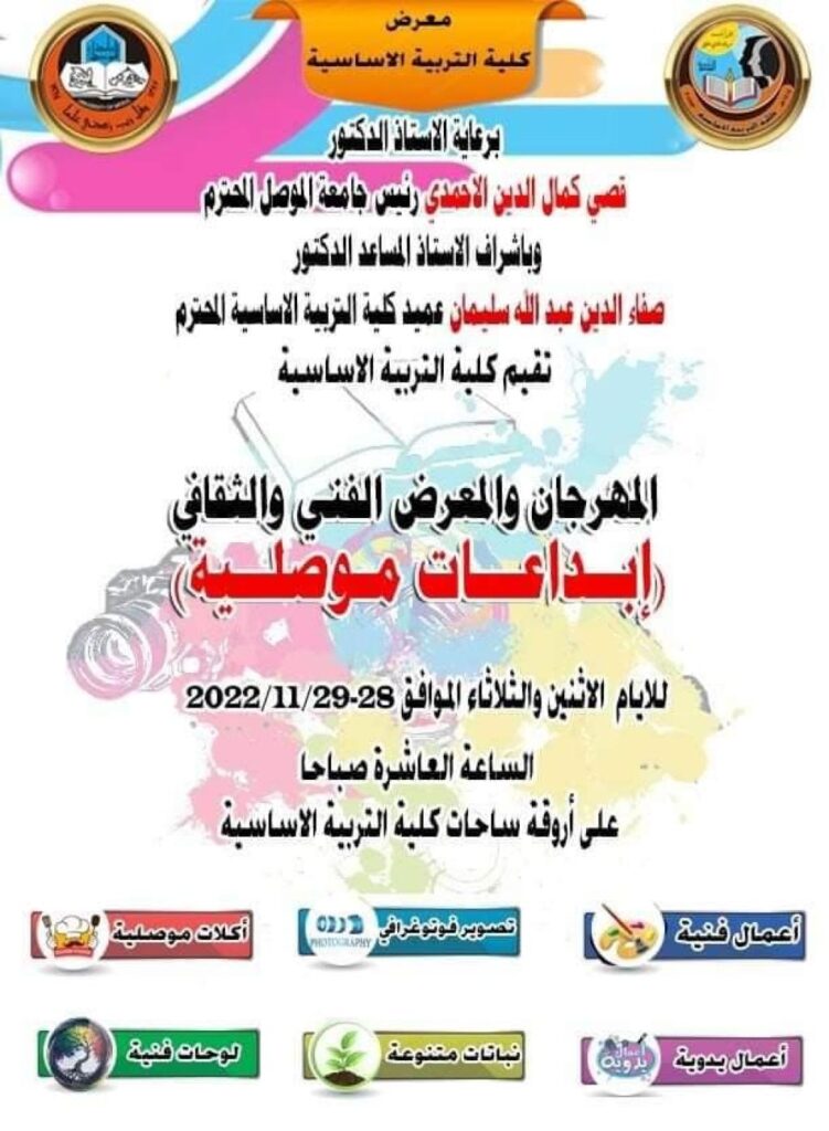 كلية التربية الأساسية تقيم المهرجان والمعرض الفني والثقافي عن إبداعات الموصل