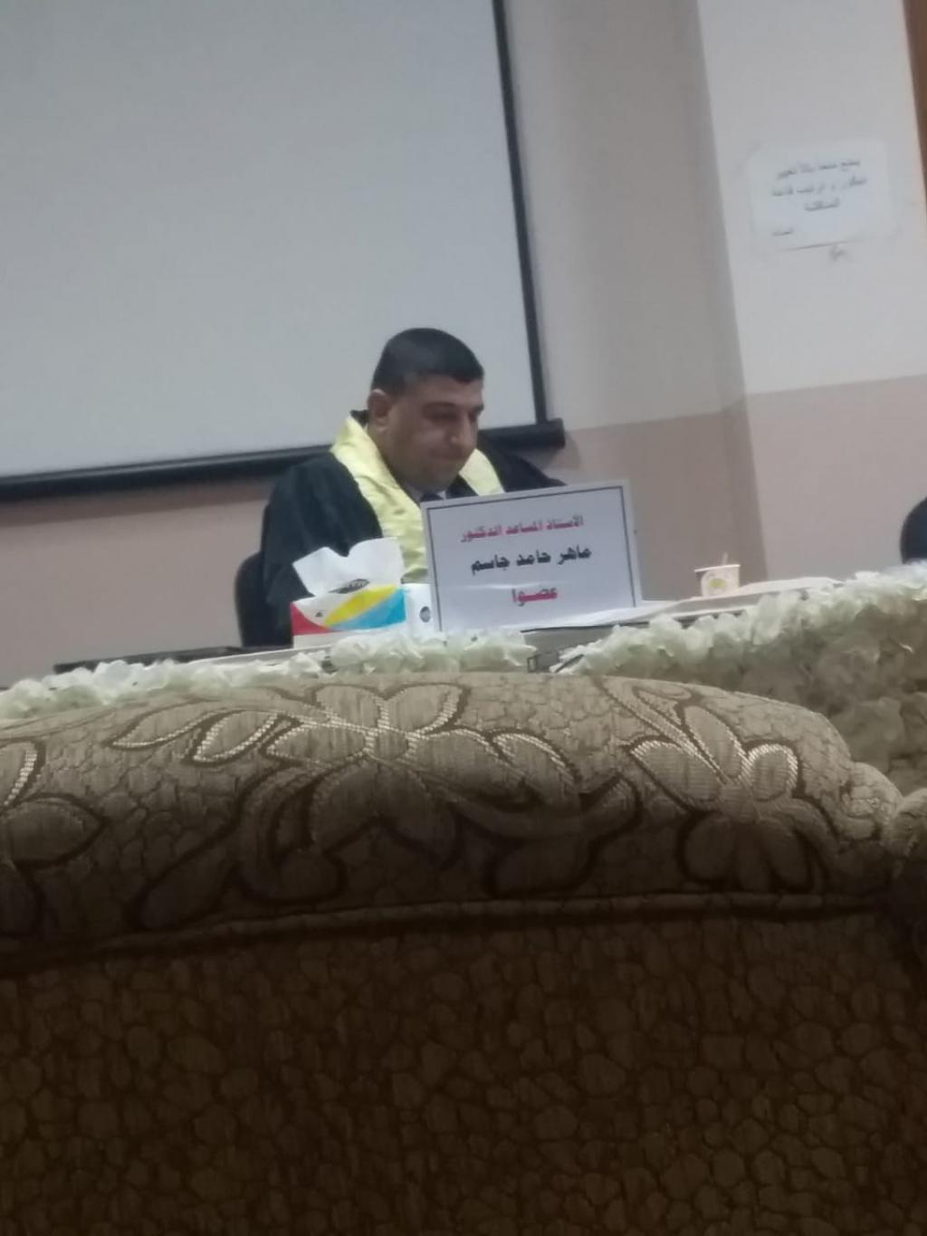 مشاركة أ.م.د. ماهر حامد جاسم من كلية التربية الاساسية في لجنة مناقشة رسالة ماجستير