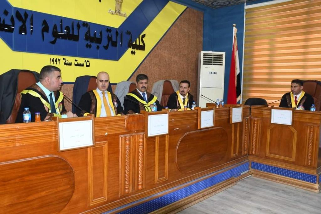 مشاركة الاستاذ المساعد الدكتور خالد احمد عيدان الحديدي رئيس قسم الجغرافية في كلية التربية الاساسية في لجنة مناقشة رسالة ماجستير في كلية التربية للعلوم الانسانية