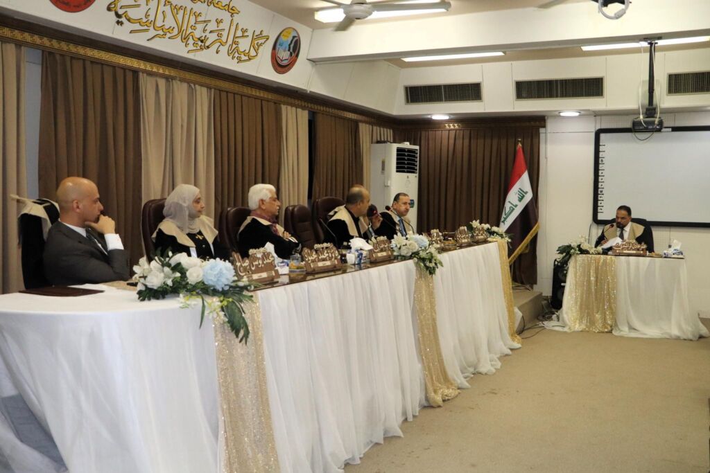 ترأس لجنة المناقشة الأستاذ الدكتور فلاح صالح حسين وعضوية كل من الأستاذ المساعد عائشة إدريس عبد الحميد والأستاذ المساعد الدكتور شهاب احمد حنش والأستاذ المساعد الدكتور سيف إسماعيل إبراهيم (عضواً ومشرفاً) .