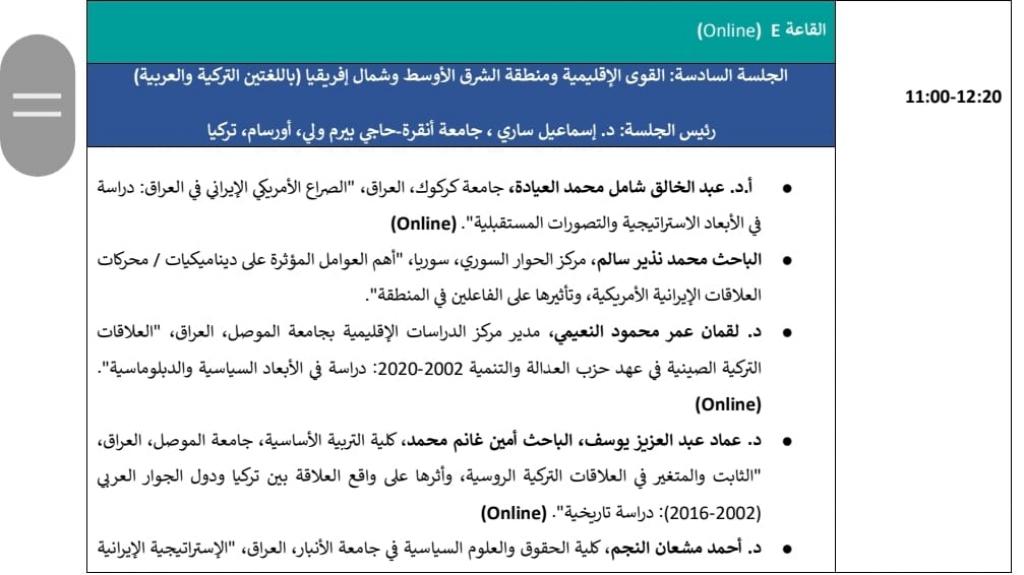 شارك أ.م.د. عماد عبد العزيز يوسف و م.م. امين غانم التدريسيان في قسم التاريخ في يوم الثلاثاء ١٣ تموز في المؤتمر الدولي الذي أقامه مركز اورسام بالتعاون مع جامعة اصطنبول تحت عنوان ( القوى الكبرى ومنطقة الشرق الأوسط ) والمؤتمر كان مدمج اي من يريد يحضر حضوري او عبر اونلاين وكانت مداخلاتهما عن طريق المشاركة عن بعد اونلاين ببحثيهما الموسوم ( الثابت والمتغير في العلاقات التركية الروسية وأثرها على واقع العلاقة بين تركيا ودول الجوار العربي ( 2002 – 2016 ) دراسة تاريخية ) .