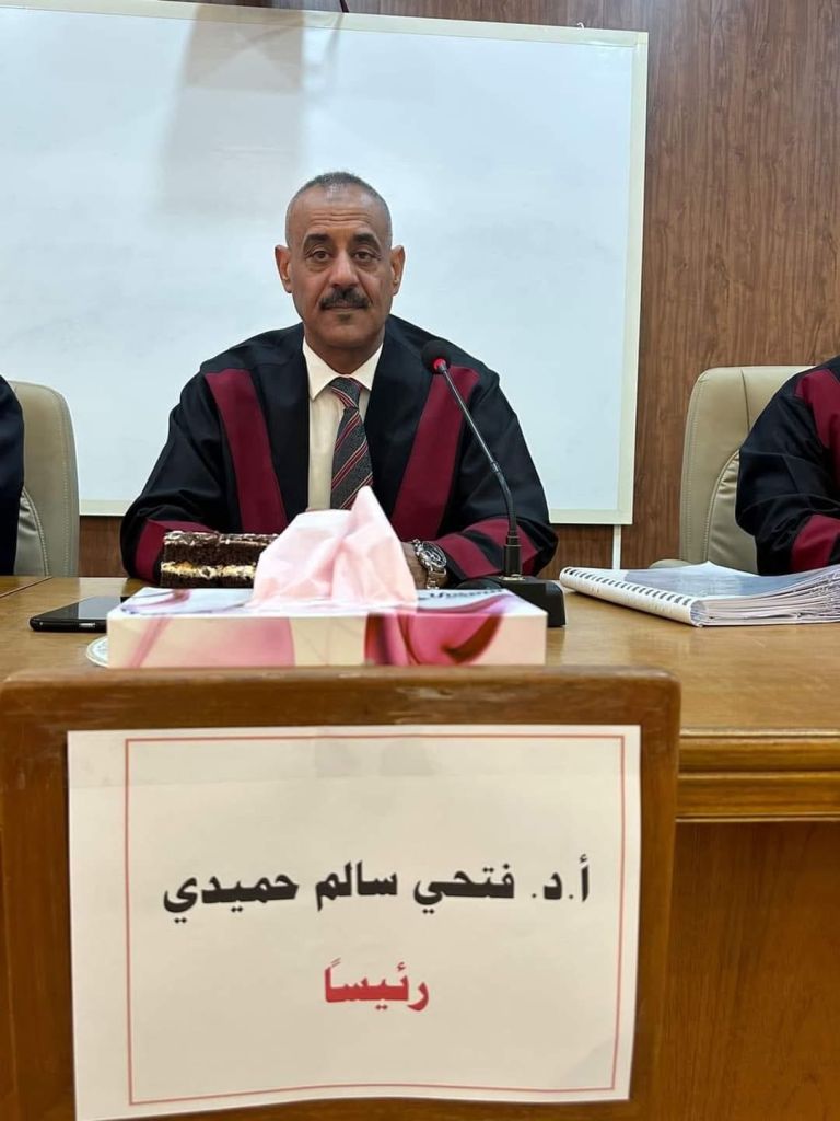 ترأس لجنة المناقشة الأستاذ الدكتور وليد خالد همام وعضوية كل من الأستاذ المساعد الدكتور رنا تركي ناجي والأستاذ المساعد الدكتور محمد علي جلال والأستاذ المساعد الدكتور سالم خلف فهد والأستاذ المساعد الدكتور حيدر حسين لفته وعضوية وإشراف الأستاذ الدكتور سلام حنتوش رشيد..
