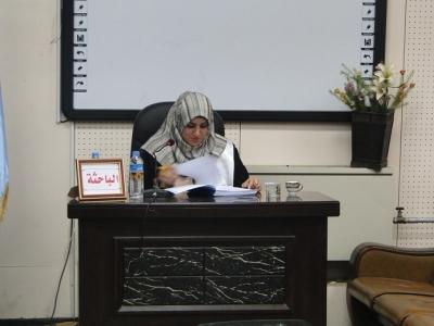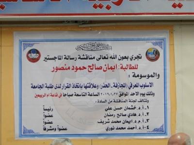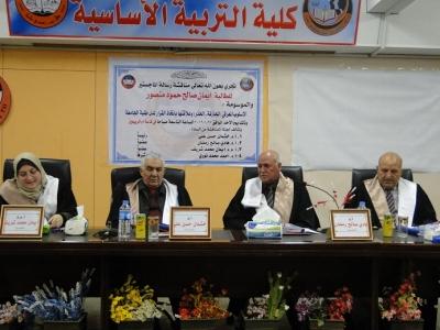 مناقشة طالبة الماجستير ايمان صالح حمود من كلية التربية الاساسية