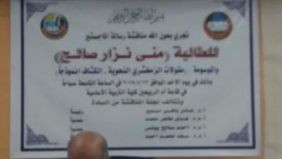 مناقشة طالبة الماجستير منى نزار صالح من كلية التربية الاساسية