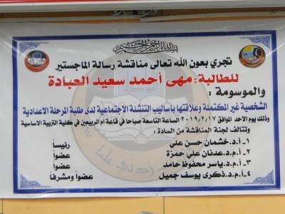 مناقشة طالبة الماجستير مهى احمد سعيد العبادة من كلية التربية الاساسية