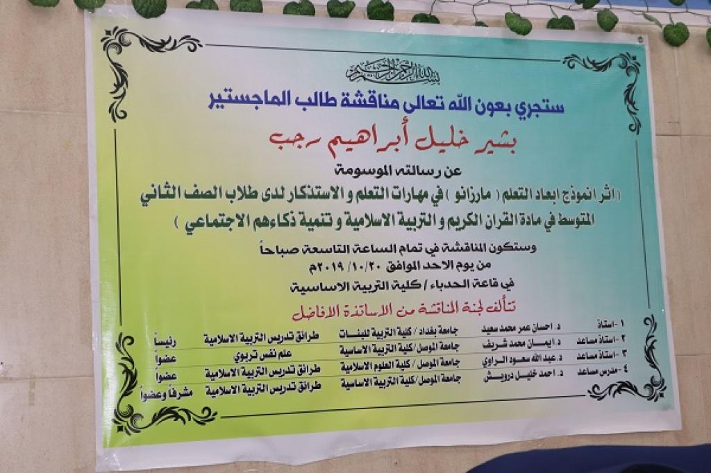 مناقشة طالب الماجستير بشير خليل ابراهيم من كلية التربية الاساسية