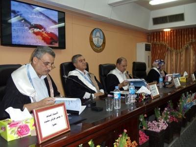 جرت في قاعة أم الربيعين في كلية التربية الأساسية يوم الاحد الموافق 7/ 7/ 2013 مناقشة طالب الماجستير حسين ابراهيم موسى عن رسالته الموسومة " البنية الايقاعية في شعر ابن خفاجة الاندلسي 450 هـ – 533هـ " بإشراف د. سعاد جاسم الصميدعي .