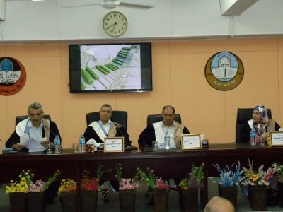 جرت في قاعة أم الربيعين في كلية التربية الأساسية يوم الاحد الموافق 7/ 7/ 2013 مناقشة طالب الماجستير حسين ابراهيم موسى عن رسالته الموسومة " البنية الايقاعية في شعر ابن خفاجة الاندلسي 450 هـ – 533هـ " بإشراف د. سعاد جاسم الصميدعي .