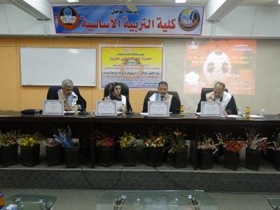 بحضور الاستاذ المساعد الدكتور صفاء الدين عبد الله سليمان عميد كلية التربية الاساسية تمت مناقشة طالب الماجستير حمزة محمد علي من قسم التربية البدنية وعلوم الرياضة في الكلية عن رسالته الموسومة ( اثر الاسلوب التبادلي في اكتساب الاداء المهاري لعدد من المهارات الاساسية لكرة القدم للصالات ودقة انجازها وتنمية الرضا الحركي ) وعلى قاعة ام الربيعين في الكلية وفي يوم الخميس الموافق 8/11/2018 . وتألفت لجنة المناقشة من :1. ا.د. صفاء ذنون اسماعيل رئيساً2. أ.م.د. نشوان محمود الصفار عضواً3. ا.م.د زياد سالم عبد عضواً 4. ا.د.قصي حازم محمد عضواً ومشرفاً