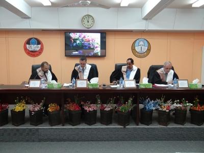 جرت في قاعة ام الربيعين في كلية التربية الاساسية يوم الاثنين الموافق 11/ 11/ 2013 مناقشة طالب الماجستير زين العابدين نايف سالم عن رسالته الموسومة" مستوى الأداء الهجومي وعلاقته ببعض القدرات التوافقية والعقلية للاعبي كرة اليد " باشراف أ. م. د. سعد فاضل عبد القادر .