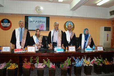 جرت في قاعة أم الربيعين في كلية التربية الأساسية يوم الخميس الموافق 6/ 6/ 2013 مناقشة طالب الماجستير علي حسن محمد عن رسالته الموسومة " اللون في شعر المتنبي " بإشراف د. ساهرة يونس محمود