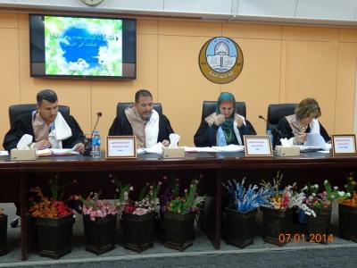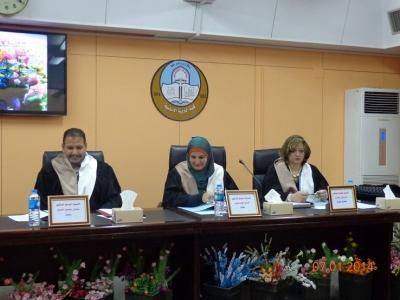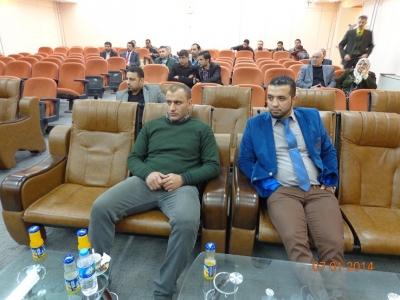 جرت في قاعة ام الربيعين في كلية التربية الاساسية يوم الثلاثاء الموافق 7/ 1/ 2014 مناقشة طالب الماجستير في كلية التربية الأساسية وليد محمد عليعن رسالته الموسومة " اثر استخدام نموذج التحري الجماعي في تعلم الاداء الفني ودقة الانجاز لبعض المهارات الهجومية بكرة السلة وتنمية الرضا الحركي " وباشراف أ. م. د. امال نوري بطرس