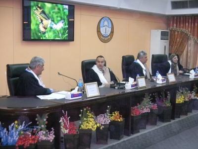 جرت في قاعة ام الربيعين في كلية التربية الاساسية يوم الاحد الموافق 23/ 2/ 2014 مناقشة طالب الماجستير في كلية التربية الأساسية احمد طه صالح الجحيشيعن رسالته الموسومة (المكان في شعر ابن المعتز 296 هـ ) وباشراف أ.م.د. سعاد جاسم محمد .