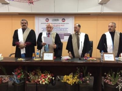 بحضور السيد وكيل عميد كلية التربية الاساسية الاستاذ المساعد الدكتور صالح محمد حسن وبرئاسة الاستاذ الدكتور محمد توفيق عثمان آل حسين أغا معاون العميد للشؤون العلمية الذي ترأس جلسة مناقشة طالب الماجستير ((يحيى مظفر فتحي العبيدي)) والتي جرت في قاعة أم الربيعين في كلية التربية الأساسية يوم الاحد الموافق 25 /2/ 2018 عن رسالته الموسومة ((مقارنة استجابة بعض المتغيرات القلبية والديناميكية الدم بعد جهد هوائه لمراحل عمرية مختلفة ( 11 – 12 سنة)) باشراف الاستاذ الدكتور ريان عبد الرزاق الحسو.. وبعضوية أ.د. حمودي عصام نعمان جامعة تكريت كلية التربية الرياضية و أ.د. زياد يونس محمد جامعة الموصل – كلية التربية الرياضية..