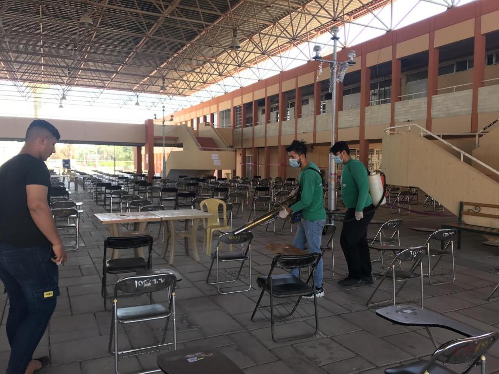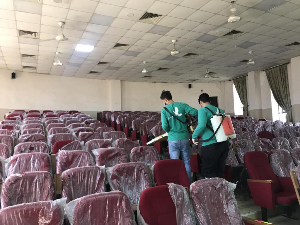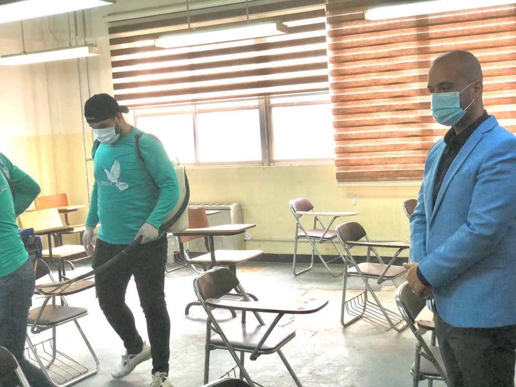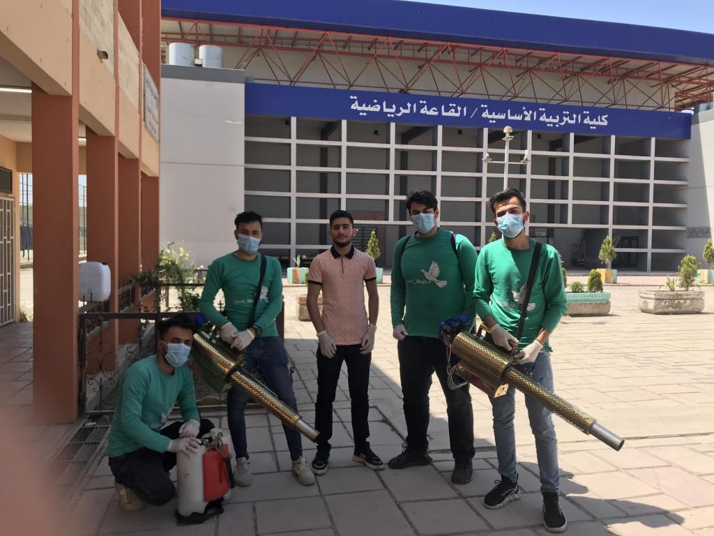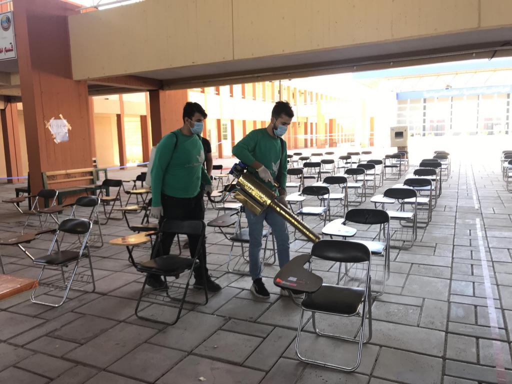 بتوجيه من الأستاذ المساعد الدكتور صفاء الدين عبد الله سليمان عميد كلية التربية الأساسية وباشراف مباشر من قبل الأستاذ الدكتور محمد توفيق عثمان معاون العميد للشؤون العلمية والأستاذ المساعد الدكتور محمد يونس صالح الجريسي معاون العميد للشؤون الإدارية واستكمالا للتحضيرات الطبية التي باشرت بها عمادة الكلية بدأ منتسبو منظمة خلوها اجمل يوم السبت 17/4/2021 بتعفير الكلية وذلك برش مواد التعقيم في غرف العمادة وجميع القاعات الامتحانية والدراسية والاقسام العلمية والشعب والوحدات الإدارية وذلك حفاظاً على سلامة جميع منتسبي وطلبة الكلية من انتقال الامراض المعدية حفظ الله الجميع منها .