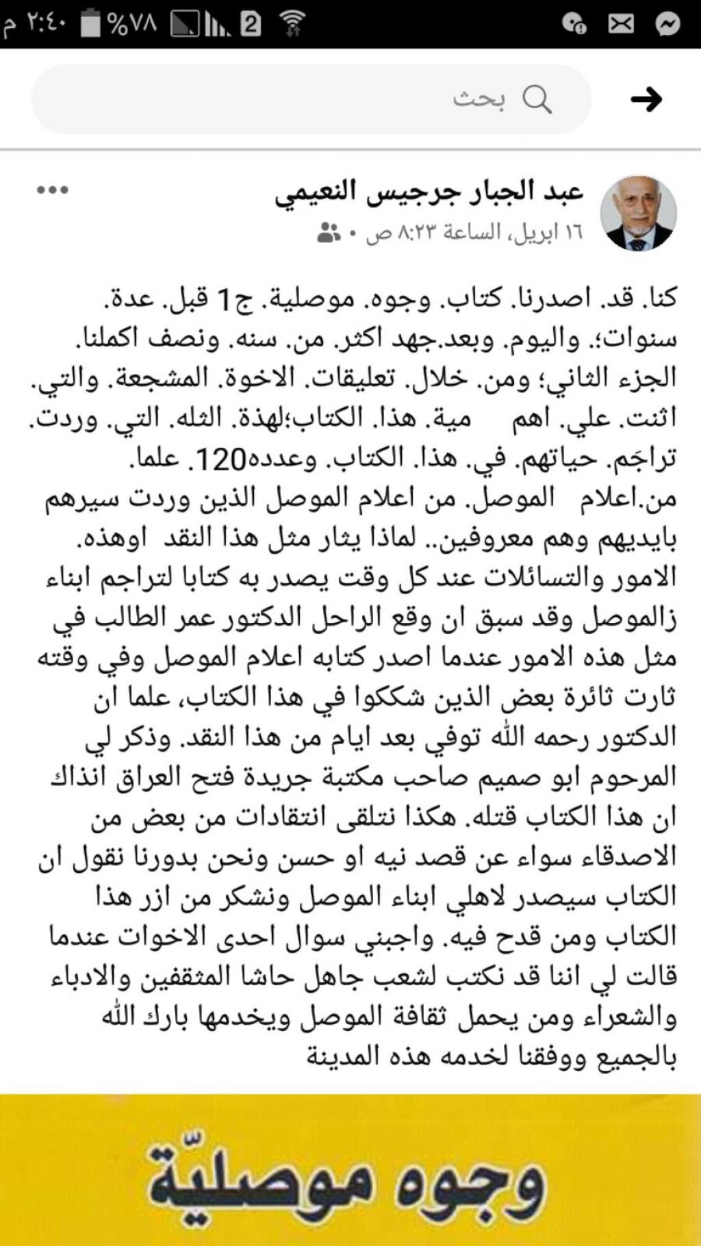حصل أ.م.د رائد راكان التريسي في قسم الجغرافية على نشر سيرته العلمية في كتاب وجوه موصلية للمؤلف الاستاذ الفاضل عبد الجبار جرجيس النعيمي والذي ضم سيرة علماء الموصل وقد صدر الكتاب حديثا .
