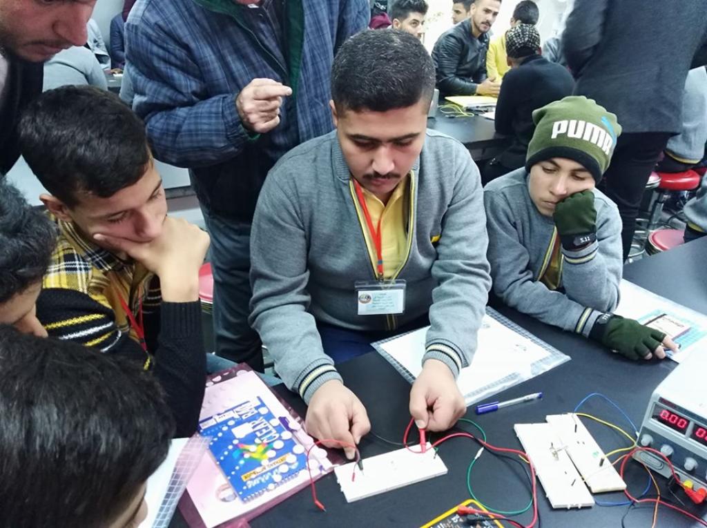 استمرار وحدة وحدة التأهيل والتوظيف والمتابعة في كلية التربية الاساسية باقامة الدورة الثالثة لطلاب مدارس محافظة نينوى (ثانوية قمة التميز) يوم الخميس الموفق 28 تشرين الثاني 2019 بالتعاون مع فرع الفيزياء – قسم العلوم العامة ، ضمن برنامج المشاريع الفائزة بالمسابقة التي نظمتها شعبة التأهيل والتوظيف والمتابعة في رئاسة الجامعة وبالتعاون مع منظمة Expertise France الحكومية الفرنسية .حيث تضمنت الدورة تطبيقات عملية حول (الالكترونيات البسيطة واستخداماتها).