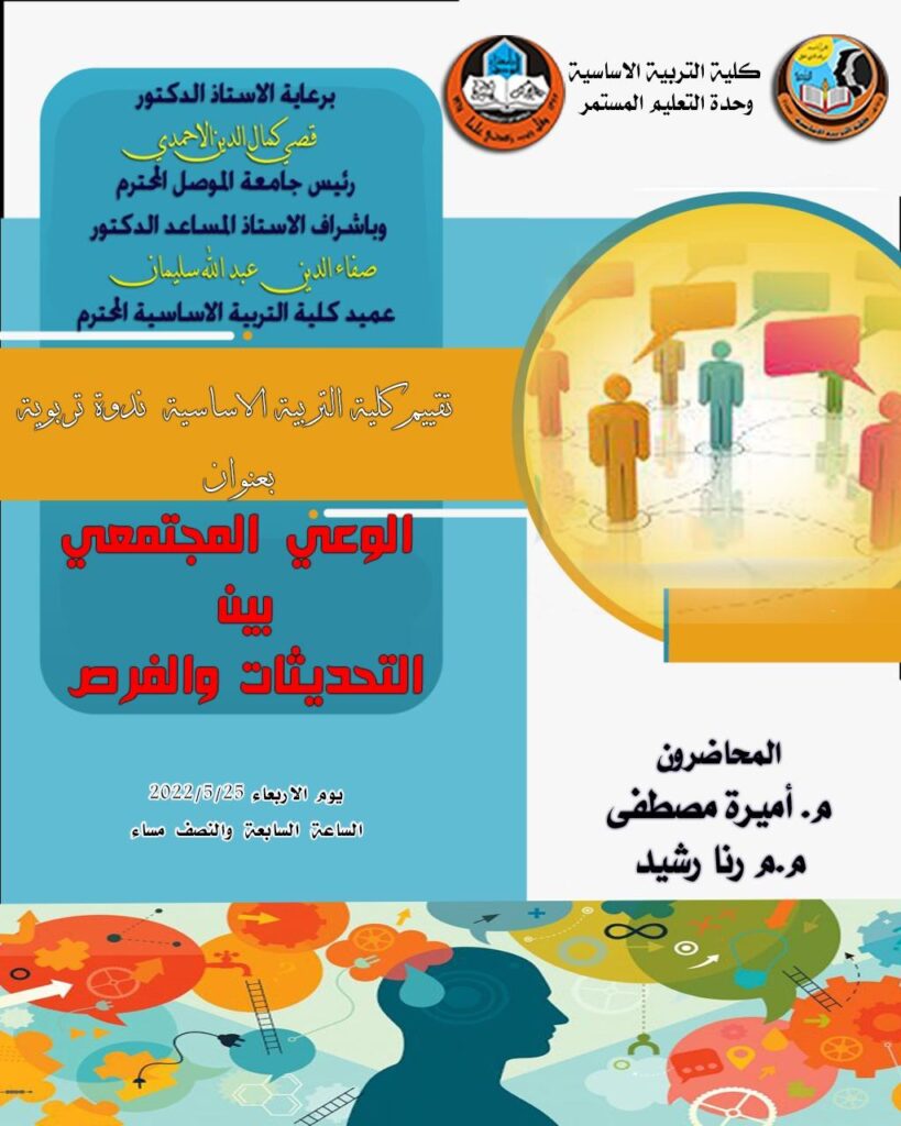 برعاية الأستاذ الدكتور قصي كمال الدين الاحمدي رئيس جامعة الموصل المحترم وبإشراف الأستاذ المساعد الدكتور صفاء الدين عبد الله سليمان عميد كلية التربية الأساسية المحترم أقامت وحدة التعليم المستمر في الكلية ورشة عمل الكترونية بالتعاون مع وحدة تمكين المرأة تحت عنوان ( تمكين المرأة – بيئة مساعدة وثقافة داعمة) وذلك يوم الثلاثاء الموافق 24/5/2022 بالساعة التاسعة مساءً وعلى منصة Zoom .تناولت الندوة التي حاضر فيها أ.م.د. فائزة محمد محمود ( قسم اللغة العربية ) م.د. امل إبراهيم القصار ( قسم رياض الأطفال ) م.م. شيماء ماهر محمد ( قسم العلوم العامة ) موضوع مهم عن المرأة حيث انها الام والاخت والزوجة والبنت التي حباها الله وكرمها في القرآن الكريم وكذلك اوصانا سيدنا النبي محمد صل الله عليه وسلام في احاديث كثيرة (استوصوا في النساء خيرا) ولكن بعد الثورة الصناعية دخلت المرأة في ميادين العمل وصارت تعمل في مختلف المجالات (التعليم، الطب، الاعلام، الادارة، الصناعة، التجارة ….) وقد حققت نجاحا ملحوظا في مختلف المجالات الا ان هذا النجاح اظهر مشكلات جديدة في الوسط العائلي والمجتمعي انعكس على الزوج والابناء، إذ سبب خروجها الى العمل مسؤوليات اخرى اضافة الى مسؤوليتها الاساسية التي انيطت بها كأم وزوجة وكثير من الاسر فقدت توازنها بسبب خروج الام الى العمل والأسرة بصورة عامة داخل المجتمع، ومهما كانت دوافع خروج المرأة للعمل سواء كانت ظروف اجتماعية او اقتصادية الا انها أحدثت الكثير من العقبات في طريق بناء الاسرة، فمسؤوليات المرأة في البيت .