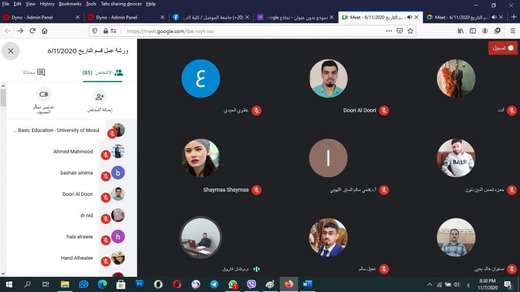 برعاية الأستاذ المساعد الدكتور صفاء الدين عبد الله سليمان عميد كلية التربية الأساسية و باشراف الأستاذ الدكتور فتحي سالم حميدي اللهيبي رئيس قسم التاريخ اقامت وحدة التعليم المستمر بالتعاون مع قسم التاريخ وعبر الفضاء الالكتروني لمنصة Meet يوم السبت الموافق 7/11/2020 بالساعة الثامنة مساءً ورشة عمل تربوية افتراضية تحت عنوان ( كتابة بحث التخرج وكيفية الارتقاء بالبحث الاكاديمي ) لطلبة المرحلة الرابعة الدراسة الصباحية والمسائية ، رحب فيها الدكتور فتحي بالحضور وأعطى مقدمة عن بحوث التخرج وكيفية الابتداء بكتابة البحث بعدها حاضر كل من التدريسييين م.م. بشار فاروق عبد / م.م. دوري سليم دوري عن تفاصيل كتابة البحث والتفتيش في المكتبات الالكترونية ومكتبات الجامعة عن المصادر التي تصب في نفس الموضوع وفقرات تنظيم البحث من المقدمة الى الخاتمة ، بعدها تم فتح باب الأسئلة والمداخلات من قبل الأساتذة الحضور والطلبة الذين بلغ حضورهم اكثر من 100 شخص من جميع الأقسام العلمية في الكلية .
