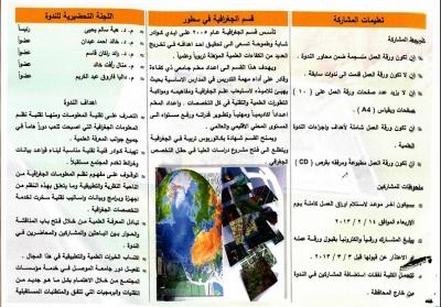يقيم قسم الجغرافية في كلية التربية الاساسية ندوته العلمية الاولى ( التطبيقات التقنية بين الجيو معلوماتية المعاصرة والجغرافية ) وذلك يوم الاربعاء الموافق 13/3/2013 وعلى قاعة ام الربيعين في الكلية .وللاطلاع على التفاصيل من خلال الفولدر