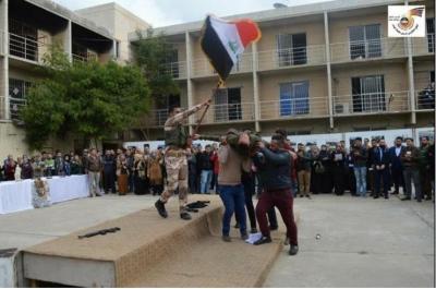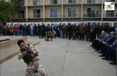 حضر السيد عميد كلية التربية الاساسية أ.م.د صالح محمد حسن المهرجان الفني الذي اقامته كلية الفنون الجميلة والذي افتتح برعاية السيد رئيس الجامعة المحترم وذلك صباح يوم الاربعاء الموافق 28 كانون الاول 2017 وتحت شعار ( بالإبداع الفني.. نعزز نصرنا المبين ) ، وضم المهرجان افتتاح معرض للرسم والنحت والطرق على النحاس والاكريليك والصور الفوتوغرافية التي تناولت أوجه الحياة المختلفة ومجموعة من صور الدمار الشامل الذي لحق بأيمن الموصل الحبيبة وما آلت إليه المدينة الجريحة بعد التحرير. فيما قدم طلبة قسم الفنون المسرحية عرضا مسرحيا رائعا جسد فيه الآثار النفسية على الفرد الموصلي خاصة والمجتمع العراقي بصورة عامة، وكذلك عبر المشهد الذي دام لنصف ساعة عن الروح القتالية العالية لدى محبي الوطن والإنسانية والفداء من اجله، وانتهى العرض المسرحي وسط تصفيق وإعجاب الحاضرين للدور المؤثر الذي جسده طلبة القسم .