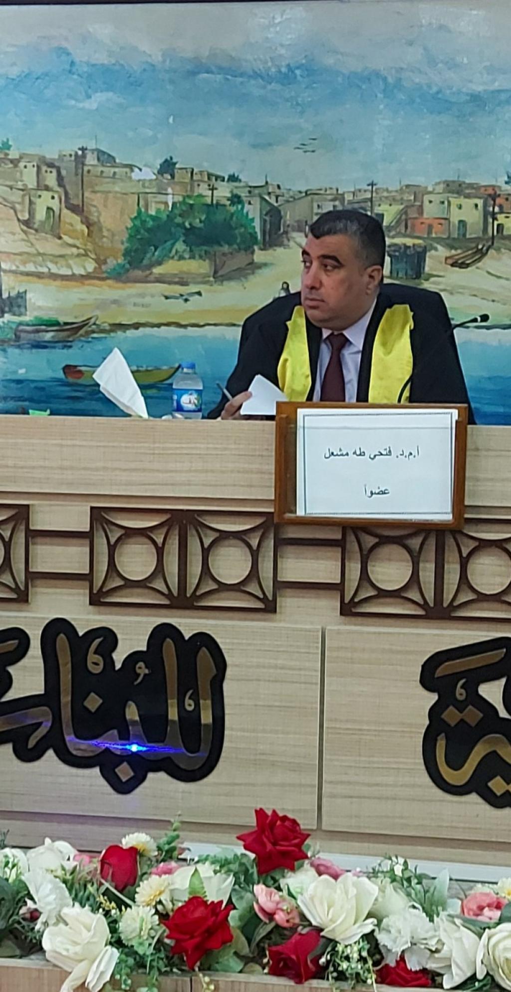 مشاركة الاستاذ المساعد الدكتور فتحي طه مشعل من كلية التربية الاساسية في لجنة مناقشة رسالة ماجستير في جامعة تكريت