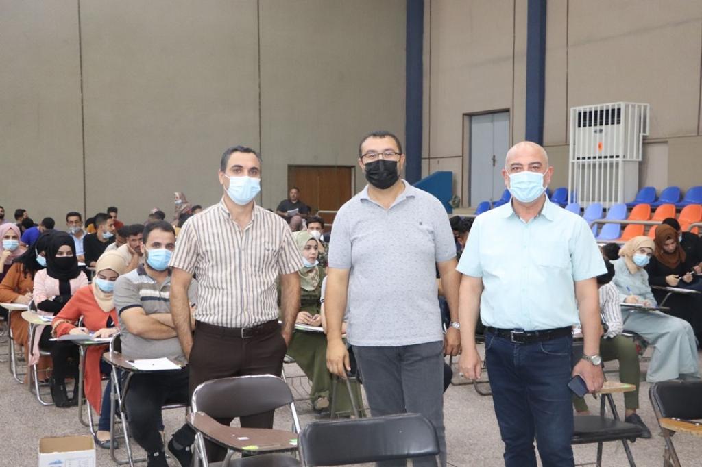 جرت اليوم السبت الموافق 14/8/2021 الامتحانات الحضورية لطلبة كلية التربية الأساسية باشراف من قبل الأستاذ المساعد الدكتور صفاء الدين عبد الله سليمان عميد الكلية ومعاونيه العلمي والإداري الأستاذ الدكتور محمد توفيق عثمان آل حسين والأستاذ المساعد الدكتور محمد يونس صالح الجريسي ، حيث تم زيارة القاعات الامتحانية في الكلية في الوجبتين الصباحية والمسائية والتي تم تأدية الطلبة امتحان الدور الاول للفصل الثاني للعام الدارسي 2020 – 2021 ، واطلع السيد العميد ومعاونيه على نمط اسئلة الامتحان لكل قسم وملائمتها مع المادة الدراسية التي تم اعطاءها للطلبة الكترونياً ، وأكد على استمرار توفير الامور الادارية للطلبة وذلك كي تسير الامتحانات بشكل نظامي وصحيح .