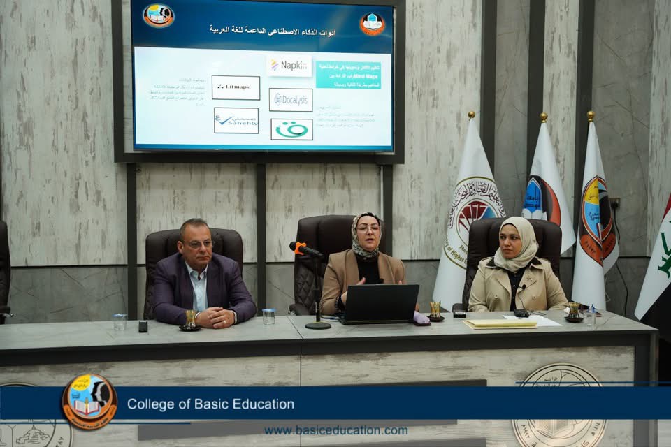 كلية التربية الاساسية تقيم ندوة علمية بعنوان: “صياغة البحث العلمي والنشر بالمستوعبات العالمية بالاستعانة بأدوات الذكاء الصناعي”…