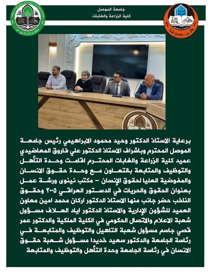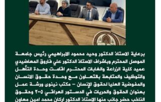 وحدة التأهيل والتوظيف والمتابعة في كلية الزراعة والغابات تقيم ورشة عمل بالتعاون مع المفوضية العليا لحقوق الإنسان في نينوى…..