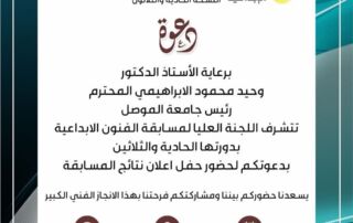 تبليغ حضور حفل ختامي ندعو كافة منتسبينا وطلبتنا الكرام الفائزين بالمسابقة الابداعية وكما في القوائم المرفقة طياً الحضور الحفل الختامي وتوزيع الجوائز، وذلك يوم الخميس الموافق 17 نيسان، في تمام الساعة العاشرة صباحاً، على قاعة [إقرأ المزيد]
