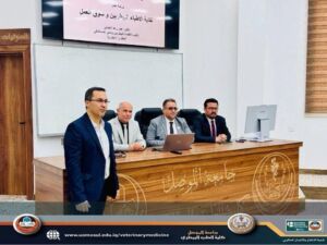 قدّم الورشة الدكتور عمر رعد الحيالي (نقيب الأطباء البيطريين – فرع نينوى ومدير المستشفى البيطري في نينوى)، وبمشاركة الدكتور أحمد أنمار (عضو مجلس النقابة ومسؤول الإعلام في المستشفى البيطري). وقد خُصصت الورشة لطلبة المرحلة الخامسة في الكلية.
