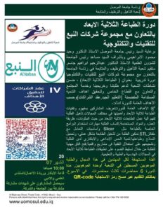 برعاية السيد رئيس جامعة الموصل الاستاذ الدكتور وحيد محمود الابراهيمي وبأشراف السيد مساعد رئيس الجامعة للشؤون العلمية الاستاذ الدكتور عبدالرحيم ابراهيم جاسم, ستقيم شعبة التأهيل والتوظيف والمتابعة في رئاسة الجامعة بالتعاون مع مجموعة شركات النبع للتقنيات والتكنلوجيا دورات تدريبية ضمن نشاطات الشعبة لدعم طلبتنا وخريجينا وخدمة المجتمع والتعاون مع القطاع الخاص ولتحقيق اهداف التنمية المستدامة المتضمنة (التعليم الجيد,عقد الشراكات)وحسب البرامج المرفقة بالاعلان ,ويكنكم التقديم عبر الرابط ادناه ,او مسح رمز الاستجابة السريع QR-code.