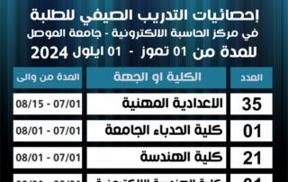 شعبة التدريب الفني في مركز الحاسبة الالكترونية… إحصائيات وأنشطة تدريبية مختلفة