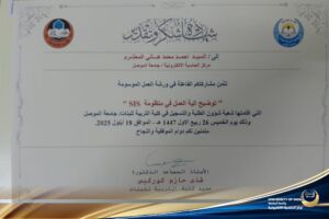 ضمن خططه الرامية إلى دعم التحول الرقمي وتعزيز كفاءة الأنظمة الأكاديمية والإدارية في جامعة الموصل، قدّم مركز الحاسبة الإلكترونية صباح يوم الخميس الموافق 18 أيلول 2025 ورشة تدريبية بعنوان: “توضيح آلية العمل في منظومة SIS”، وذلك في كلية التربية للبنات من الساعة ٩:٣٠ صباحاً حتى ١ ظهراً.