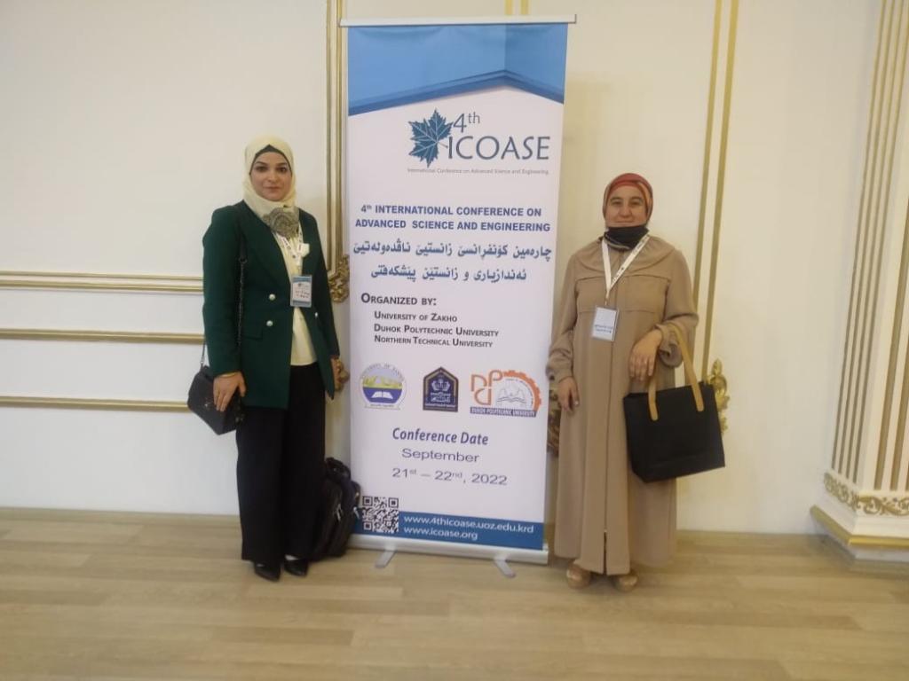 شاركت كل من الدكتورة شيماء قيدارعبدالجبار والدكتورة اسراء توفيق عزيز من مركز الحاسبة الالكترونية في المؤتمر الدولي الرابع للعلوم والهندسة المتقدمة 4th International Conference on Advanced Science and Engineering (ICOASE 2022) يومي21 و 22 أيلول 2022 والذي اقامته الجامعة التقنية الشمالية بالتعاون مع جامعة زاخو وجامعة دهوك التقنية.