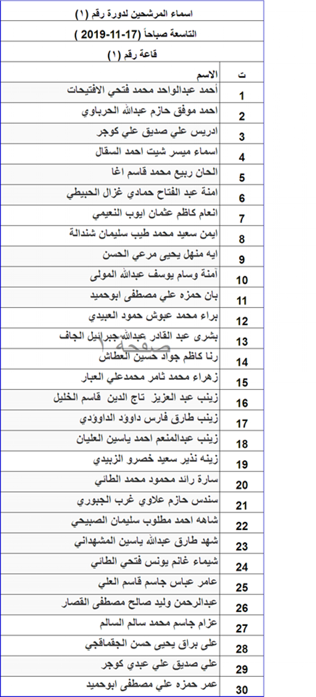 على السادة المدرجة أسماءهم أدناه مراجعة مركز الحاسبة الالكترونية لغرض اكمال التسجيل ودفع رسوم الاشتراك في دورة كفاءة الحاسوب والتي ستنطلق يوم الاحد الموافق 17-11-2019