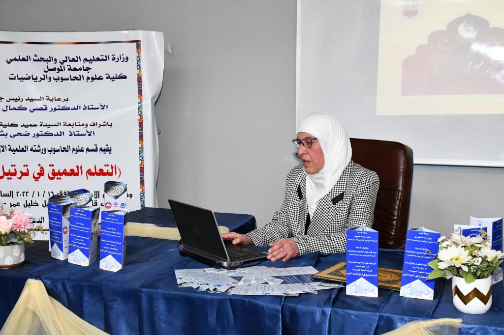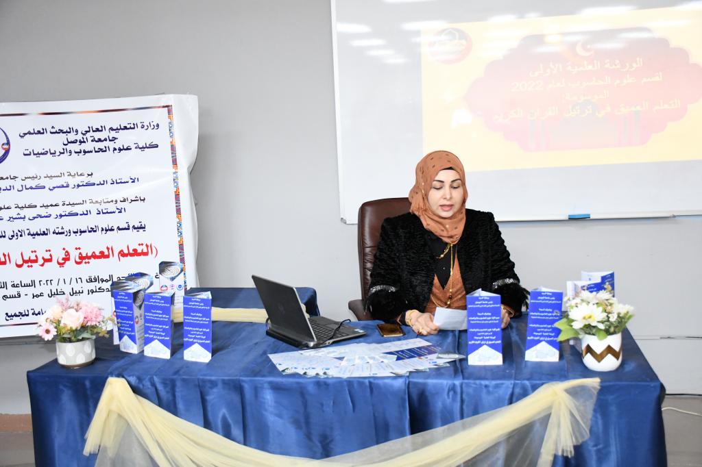 وبإشراف ومتابعة السيدة عميد كلية علوم الحاسوب والرياضيات الأستاذ الدكتور ضحى بشير عبدالله المحترمةاقام قسم علوم الحاسوب يوم الأحد الموافق 16-1-2022 الورشة العلمية الاولى للعام الدراسي 2021-2022 المعنونة :(التعلم العميق في ترتيل القرآن الكريم)تناولت الورشة تسليط الضوء على استخدام التعلم العميق في التحديد التلقائي للتطبيق الصحيح لقواعد تلاوة القرآن الكريم الأساسية وكيفية تمييز التلاوة القرآنية , وبناء نماذج ذكية لتمييز التلاوة الصحيحة ضمن احكام التلاوة, كما وتم إعطاء نبذة عن شبكات التعلم العميق وكيفية توظيفها في بناء نموذج ذكي لتمييز القراءات القرآنية.تم إقامة الورشة على قاعة الدكتور نبيل خليل عمر – قسم علوم الحاسوب وحضرها حفل غفير من تدريسيي ومنتسبي الكلية .شعبة الاعلام والعلاقات والعامة