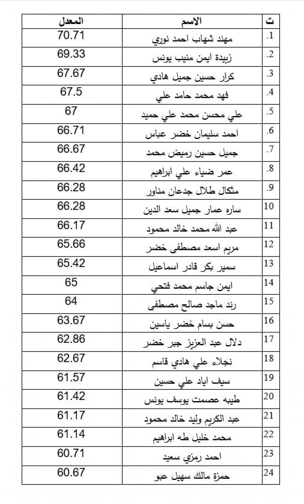 على كافة الطلبة المدرجة اسمائهم ادناه والمرشحين للقبول في قسم علوم الحاسوب/الدراسة المسائية للعـام الدراسي 2020-2021 مراجعة شعبة التسجيل لغرض إكمال المستمسكات المطلوبة وحصولهم على تاييد المباشرة خلال مدة اسبوع واحد من تاريخ ظهور القبول وبعكسه سيتم إلغاء ترشيحهم للقبول .