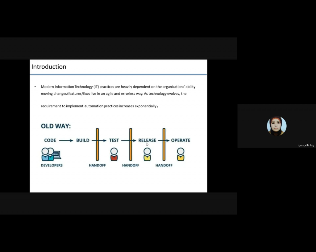 اقامت كلية علوم الحاسوب والرياضيات – قسم البرمجيات الورشة العلمية الإلكترونية الثالثة عشر للعام 2021 الموسومة:(الاتجاهات الحديثة في هندسة البرمجيات)عبر الفضاء الإلكتروني يوم الثلاثاء 29-6-2021 ,الساعة التاسعة مساءاً وعبر منصة Google Meet .قدمها :م.م. تغريد رياضم.م. رشا غانم ‏م.م. مروة عبد الكريم زيدانم.م. مروة مروانهدفت الورشة الى‏ التطرق للمنهجيات المستخدمة في ‏تطوير البرمجيات مع ذكر ‏اساسيات مزايا وعيوب كل طريقة. ‏بالإضافة الى التعرف على اهم المنهجيات الحديثة ‏والاساليب المستخدمة في عملية ‏التطوير للحصول على استخدامات جديدة في ‏هندسة البرمجيات كالتكامل المستمر والتسليم المستمر (‏CI / CD‏) من اجل معالجة الفجوة بين استقرار ‏العمليات والتطوير ‏السريع.‏رابط تسجيل الورشة على قناة الكلية على اليوتيوب :https://youtu.be/5eAFC8rgIuc