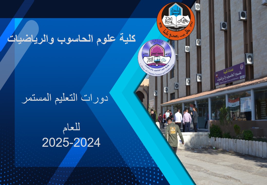 برعاية وإشراف السيدة عميد كلية علوم الحاسوب والرياضيات الأستاذ الدكتور ضحى بشير عبدالله المحترمة وضمن سلسلة النشاطات العلمية للكلية, تقيم كلية علوم الحاسوب والرياضيات دورة [إقرأ المزيد]