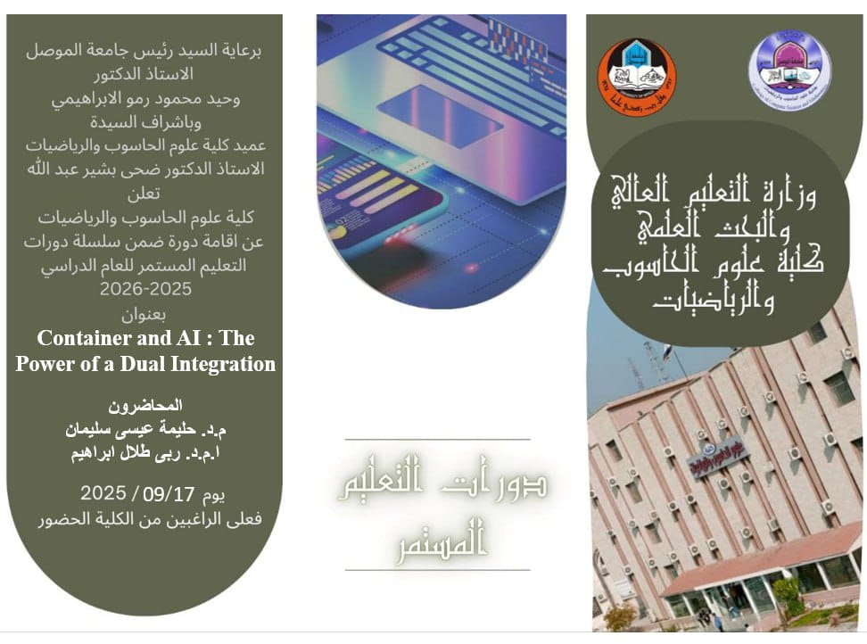 برعاية واشراف السيدة عميد كلية علوم الحاسوب والرياضيات الأستاذ الدكتور ضحى بشير عبدالله المحترمة وضمن سلسلة النشاطات العلمية للكلية, تقيم الكلية بالتعاون مع وحدة شؤون [إقرأ المزيد]