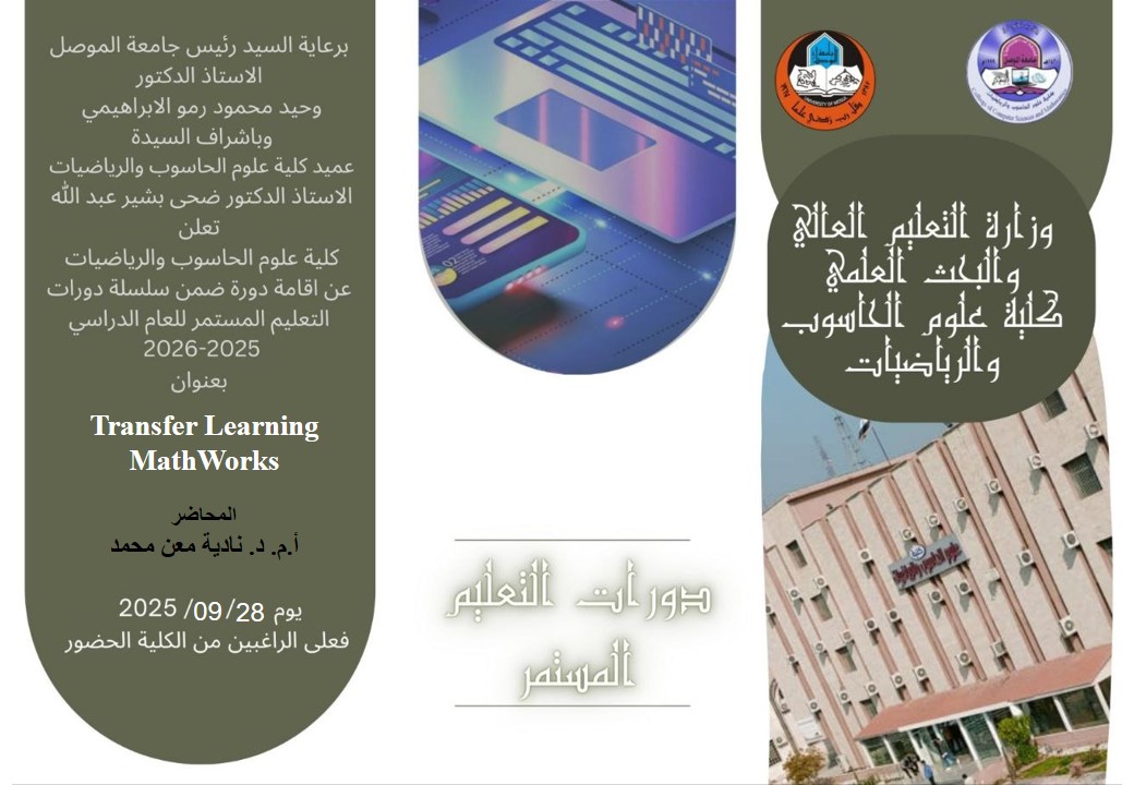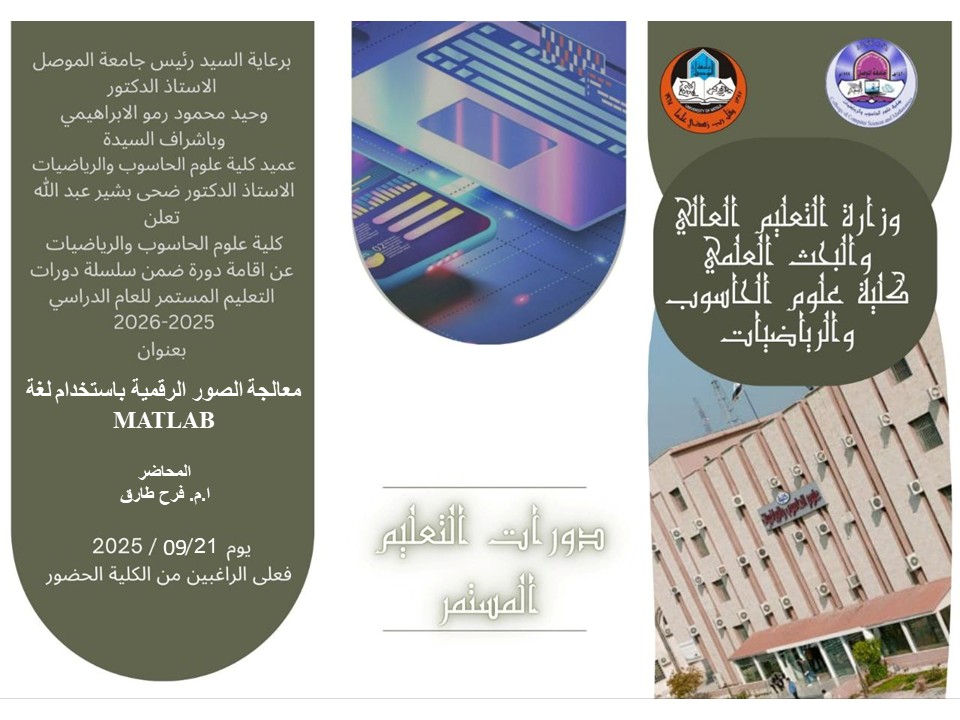 برعاية واشراف السيدة عميد كلية علوم الحاسوب والرياضيات الأستاذ الدكتور ضحى بشير عبدالله المحترمة وضمن سلسلة النشاطات العلمية للكلية, تقيم الكلية سلسلة من دورات التعليم [إقرأ المزيد]