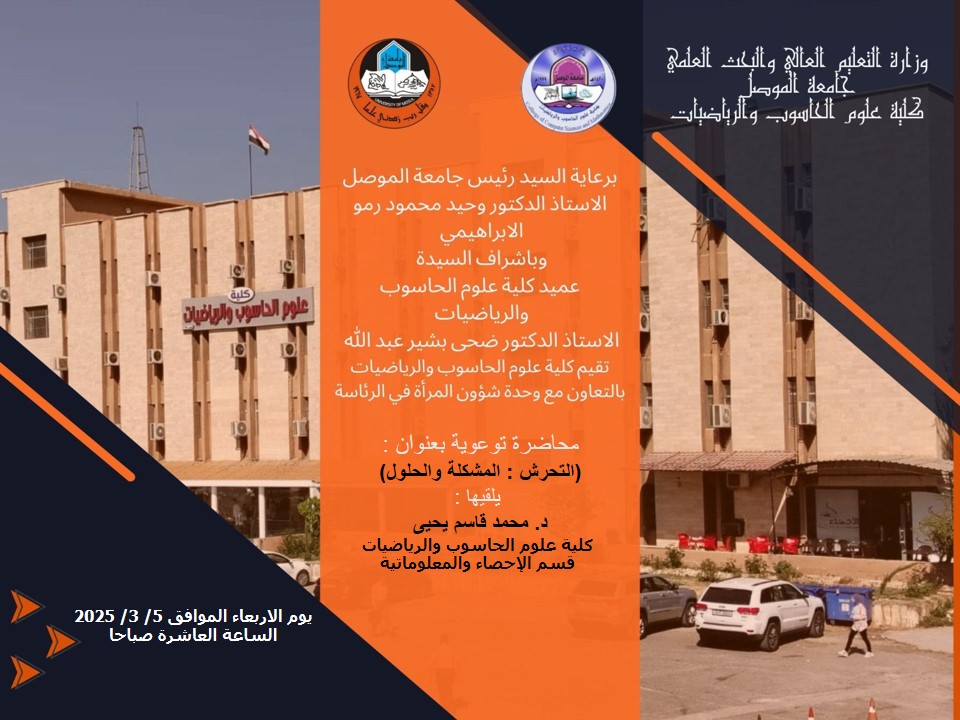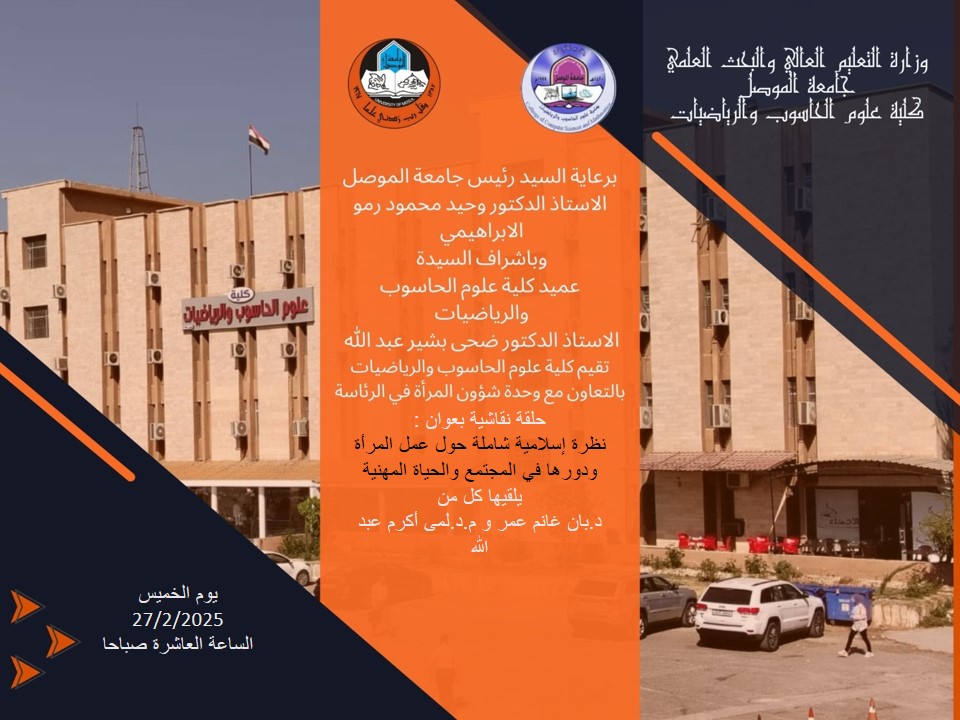برعاية السيد رئيس جامعة الموصل الأستاذ الدكتور وحيد محمود الابراهيمي المحترم وبإشراف السيدة عميد كلية علوم الحاسوب والرياضيات الأستاذ الدكتور ضحى بشير عبد الله [إقرأ المزيد]